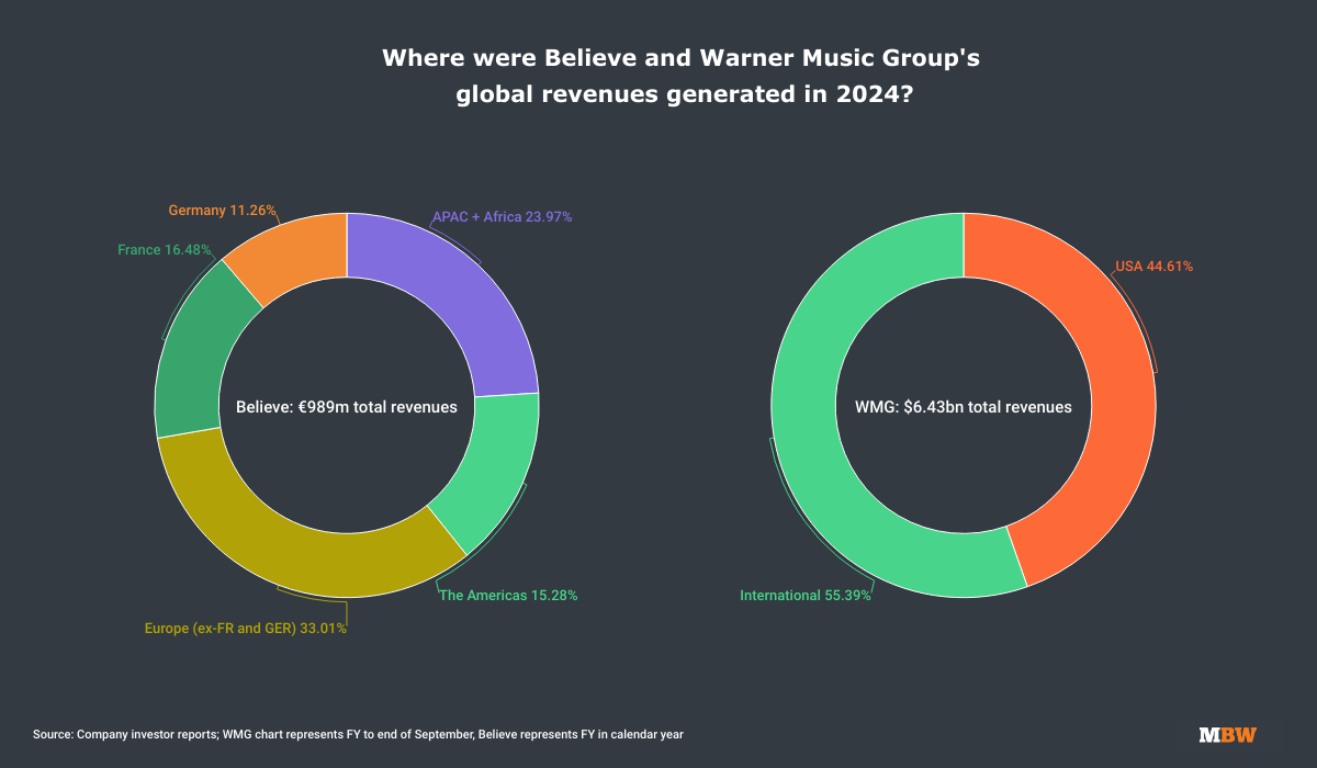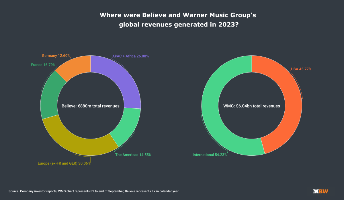 Note: Believe’s FY runs calendar year; Warner Music Group’s FY runs to the end of September.