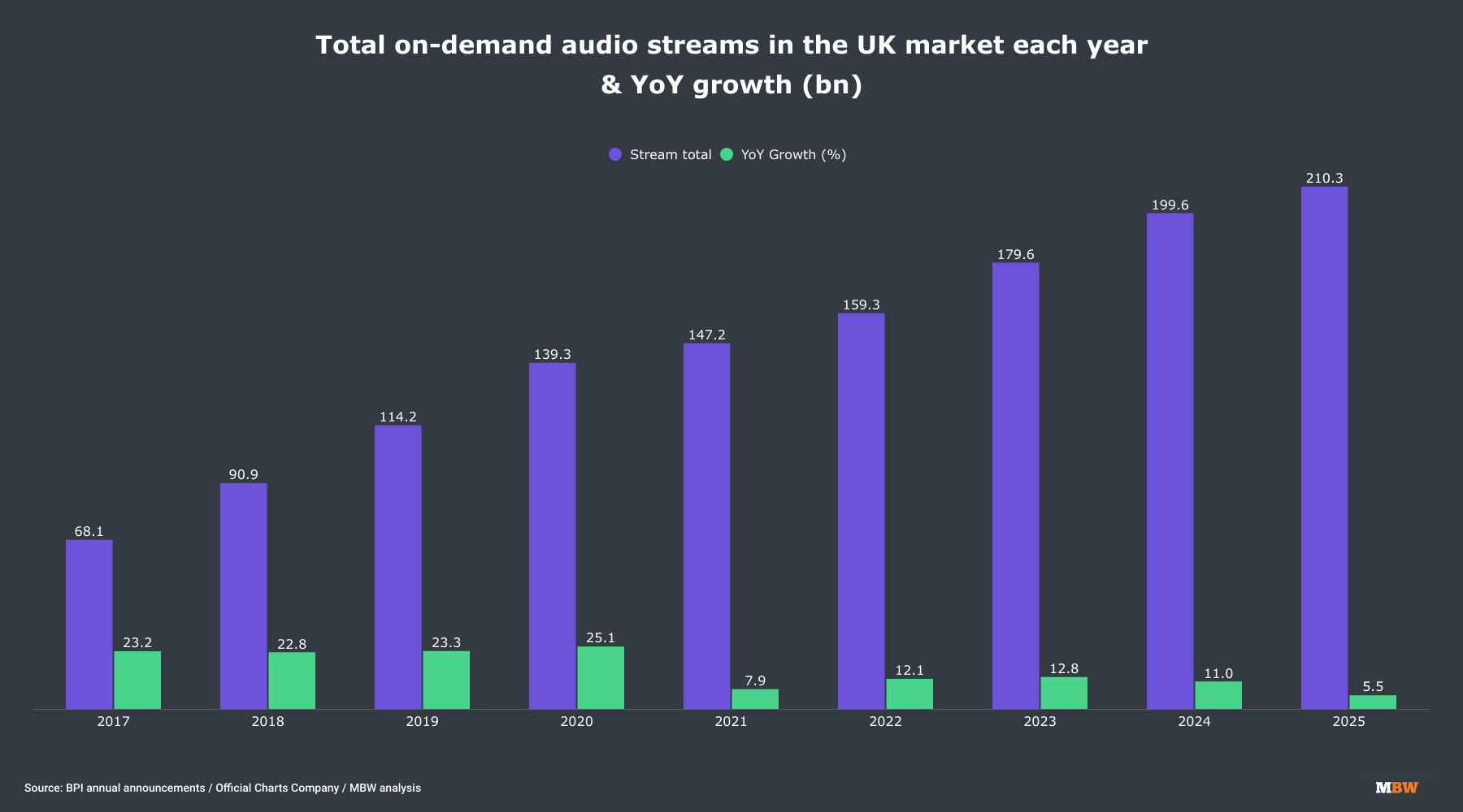 Each year, the BPI issues official market figures showing the UK market’s consumption patterns, including streaming figures.