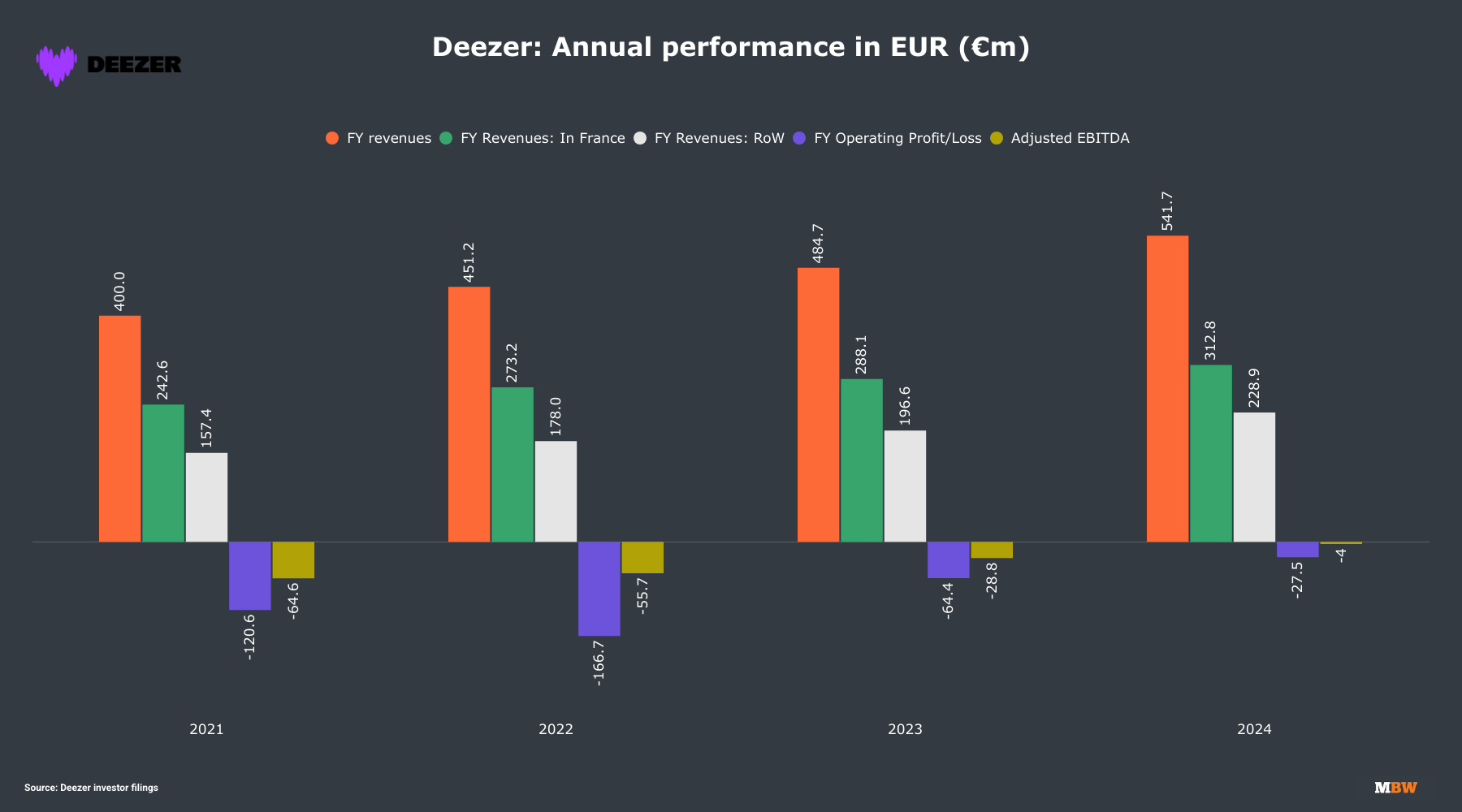 Below is a data visualization of the annual financial performance of Deezer in EUR (million).