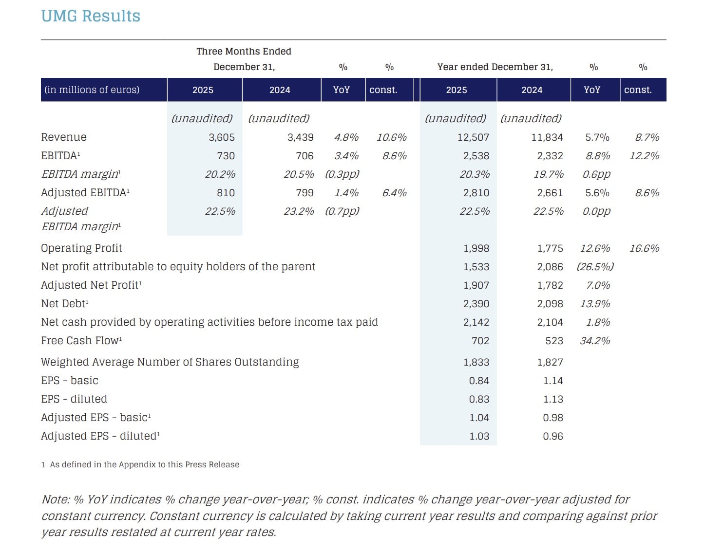 That’s according to UMG’s financial results for the fourth quarter and full year ended December 31, 2025, published today (March 5).