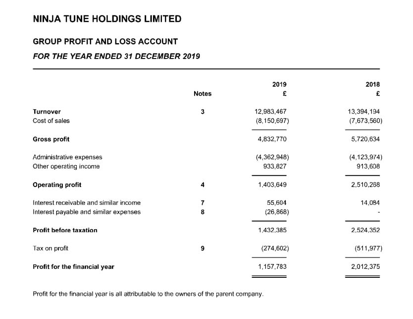 Ninja Tune’s operating profit stood at £1.40 million in 2019, while its net profit after tax weighed in at £1.16 million.Music Business Worldwide